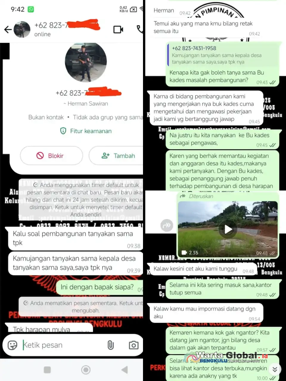 Chat whatsapp Ibu kades kepada awak media yang turun langsung bersma Perkumpulan PGM-TV Beberapa Hari lalu