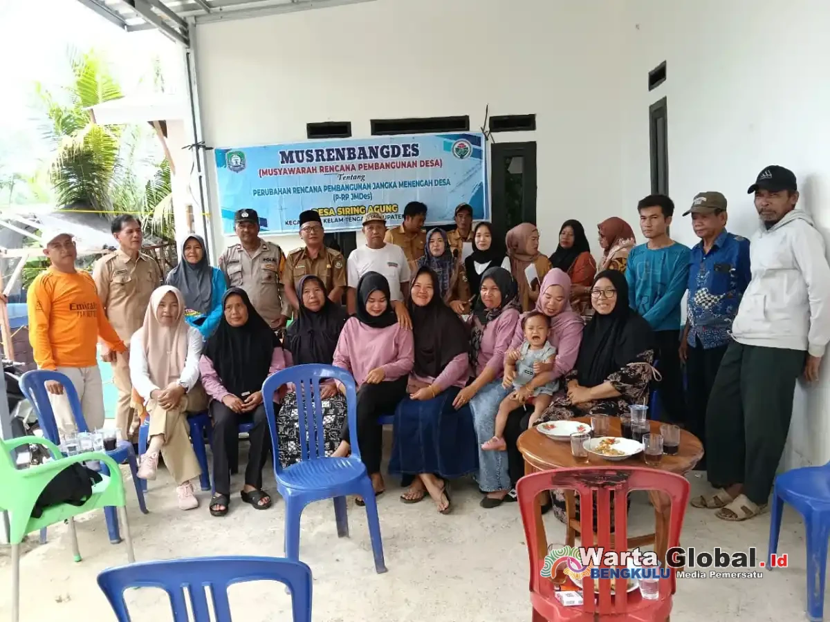 SIRING AGUNG bengkulu.wartaglobal.id Musyawarah desa Penyusunan perubahan rpjmdes dan rkpdes tahun anggaran 2025 di desa Siring agung, Kecamatan kelam tenga kabupaten kaur, bersama dengan BPD menyelenggarakan musyawarah desa (musdes) pada tanggal 15 November 2025.
